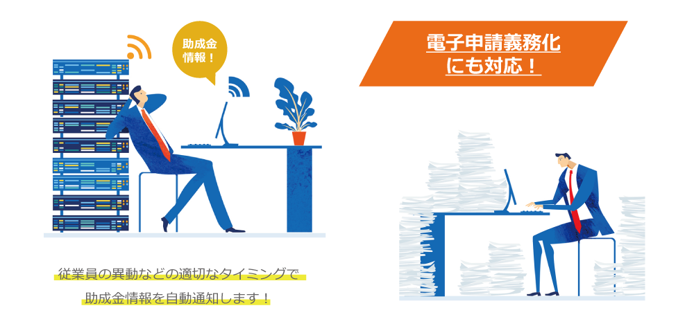 助成金自動案内機能がついているため、従業員の雇用ステータスに変更があった際、申請できる助成金の情報を自動でお知らせしてくれます。